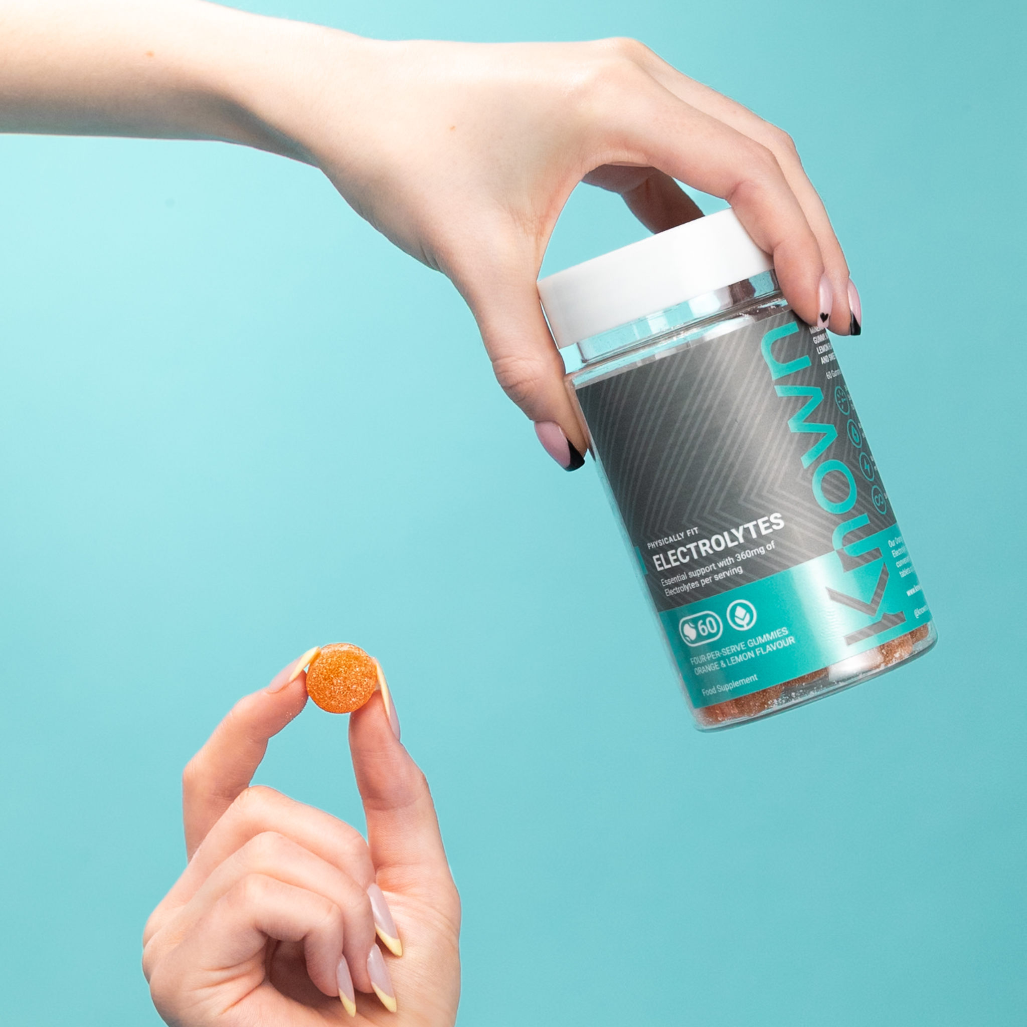 With 360mg of electrolytes per serving, these delicious Orange and Lemon-flavored Electrolyte gummies provide a balanced blend of sodium, magnesium, potassium, calcium, and chloride. No mixing, no measuring—just take 4 gummies and hydrate. Perfect for replenishing during exercise, heat, or everyday hydration needs, all in a convenient and tasty format.