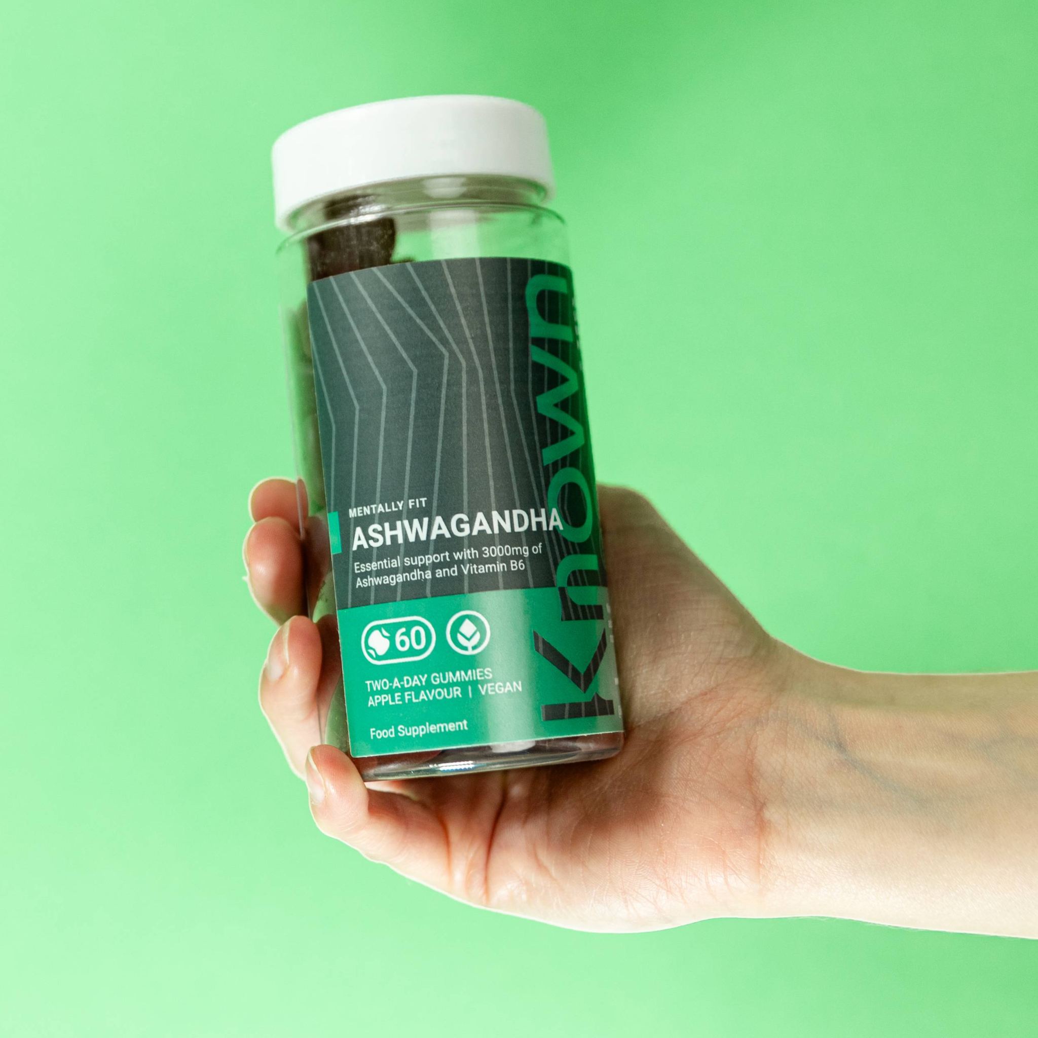 Known Nutrition Ashwagandha Gummies are high-strength with 3,000 mg of Ashwagandha per serving, supported by Vitamin B6 in a tasty Apple flavour.